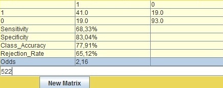 If I say that based on my 172 cases (you van seet it on green header of the main window) of my validation set I will reject all people that have a score higher than 522 then: