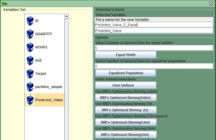 For now lets us move on to the first panel to the left (leave the middle for now). What kazAnova does here is exactly what I did before when I was computing the score for Mr. X (stay with me and I will reveal his true identity in the future!). It takes each row of our set (regardless of whether it was in the validation or training set) and scores them one by one in the same order as they appear in the main set. The last column in that panel called “predicted_value” is the score attributed to each one of the subscribers.