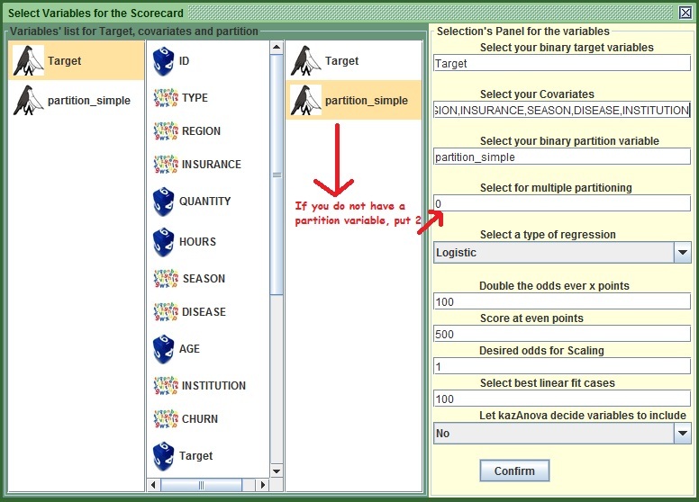 If you don’t select a partition or change the value to 2, kazAnova will use all the set to create the scores. In this case it would not be a bad idea as the set is small, but for the sake of doing things as you would normally do, I would like you to do it with a proper split.